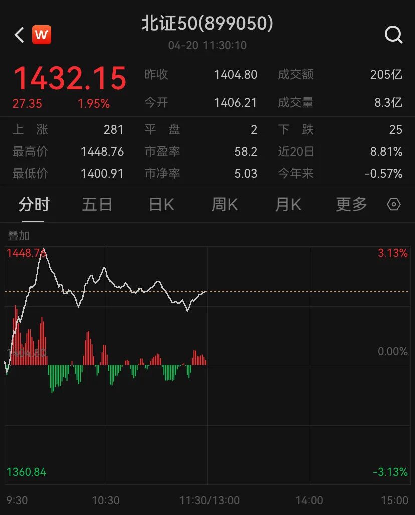 北证50指数盘中涨超3%