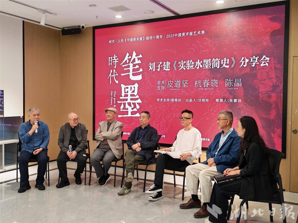 现场,刘子建向行家共享了他的著述《施行水墨简史》,细述该书的创作进程。中国艺术相干院好意思术相干所相干员杭春晓对该书有所评价:“湖北关于80年代以来的水墨画转向和调治来说是一个相称焦虑的区域。《施行水墨简史》以历史化的面孔整理施行水墨的发展进程,其中的一些材料为进一步判辨武汉在1980至90年代中国水墨转向进程中所作的孝敬提供了机会。”
